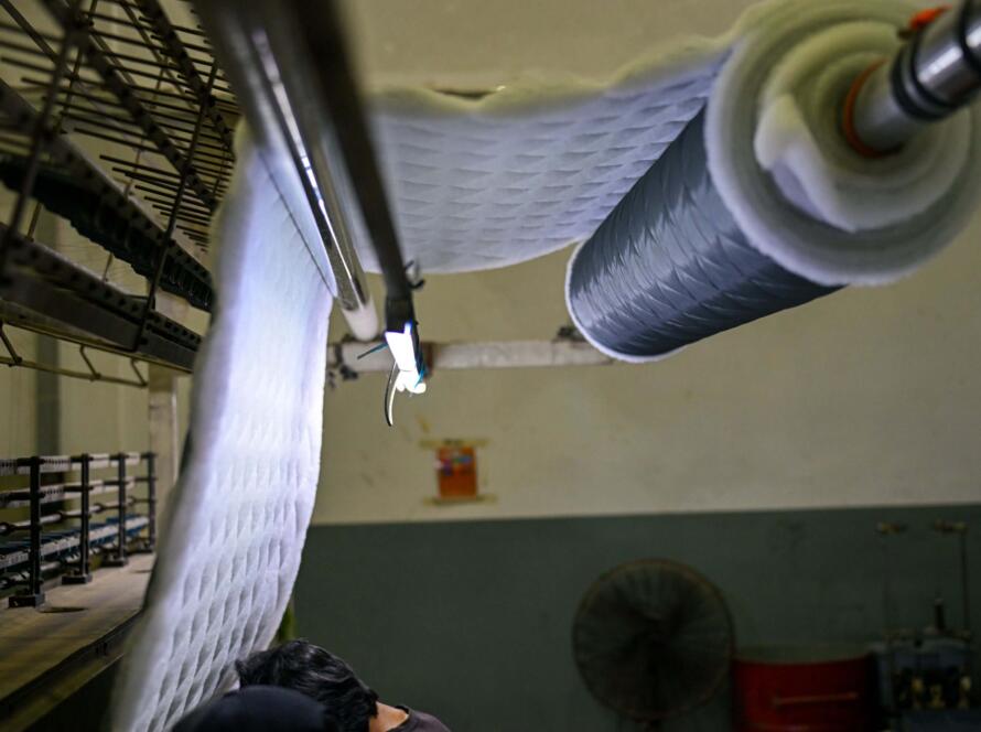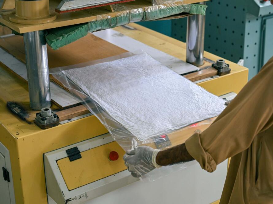 Imported polyester fibers are opened, blended, and layered into soft, even sheets using automated web-forming systems. Thermal bonding produces resilient wadding used in quilts, pillows, and comforters tested for uniform…