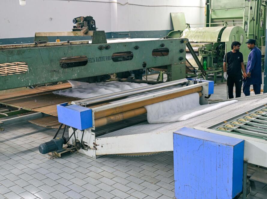 Advanced non-woven technology distributes fibers via air pressure, creating ultrasoft and breathable webs that combine comfort with strength used in export-grade comforters. Monthly Capacity: 400,000 mtr