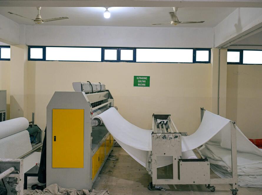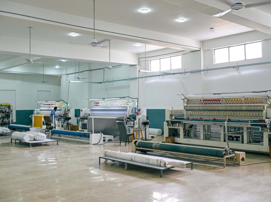 Using high-frequency waves, fabrics are fused without threads, forming seamless, durable quilts. Perfect for lightweight, modern bedding lines. Monthly Capacity: 25,000 mtr