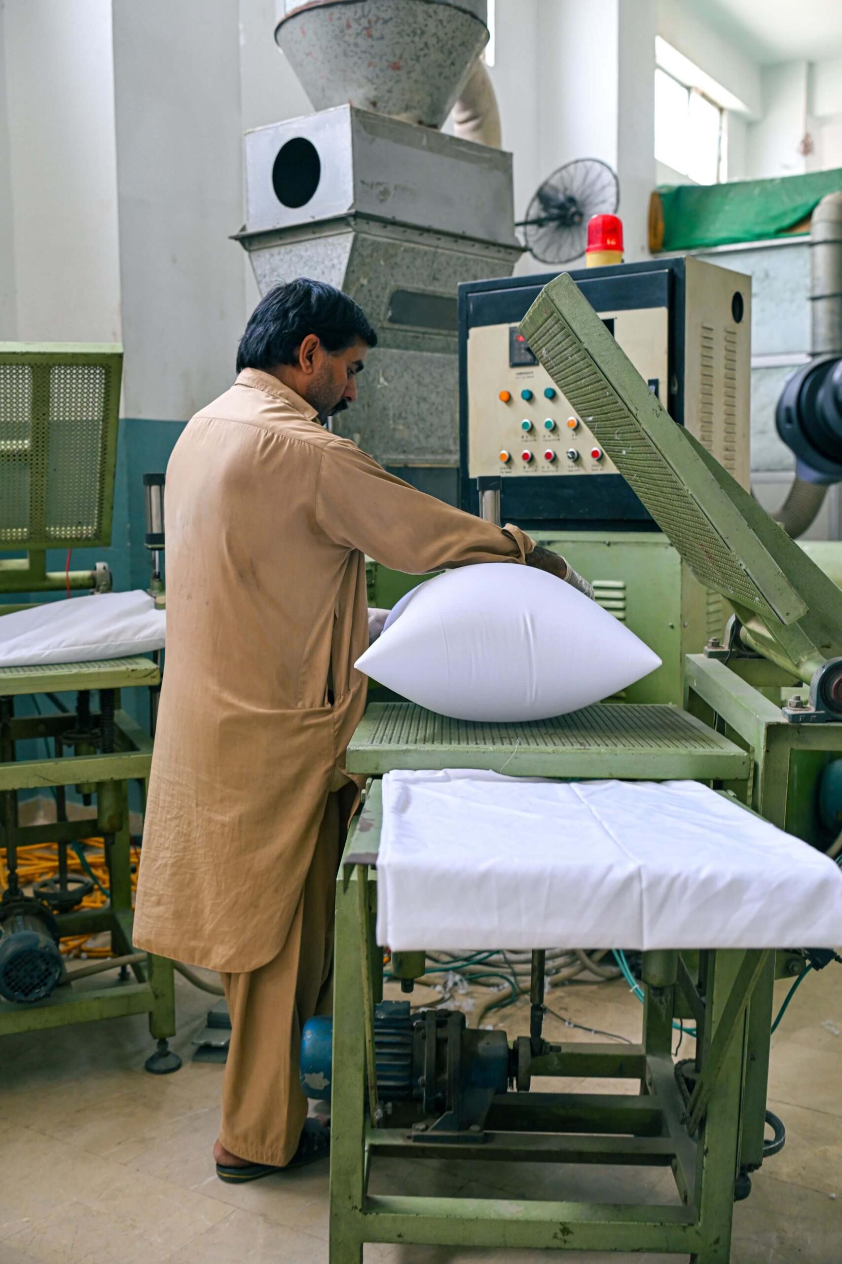 Automated filling systems distribute ball fiber evenly into casings, with adjustable density for different client needs from ultra-soft to firm.